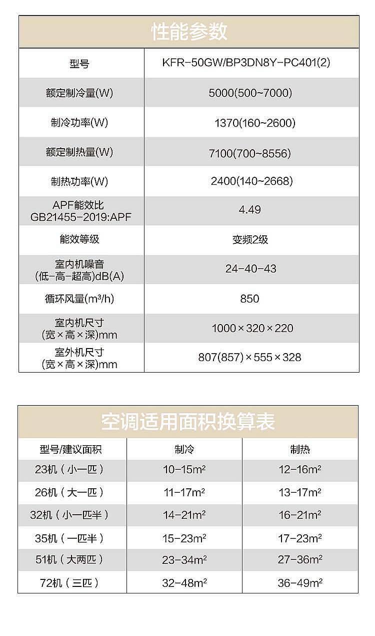 商品名称:美的 Midea KFR-50GW/BP3DN8Y-PC401(2) 2匹挂机 壁挂式空调(套)